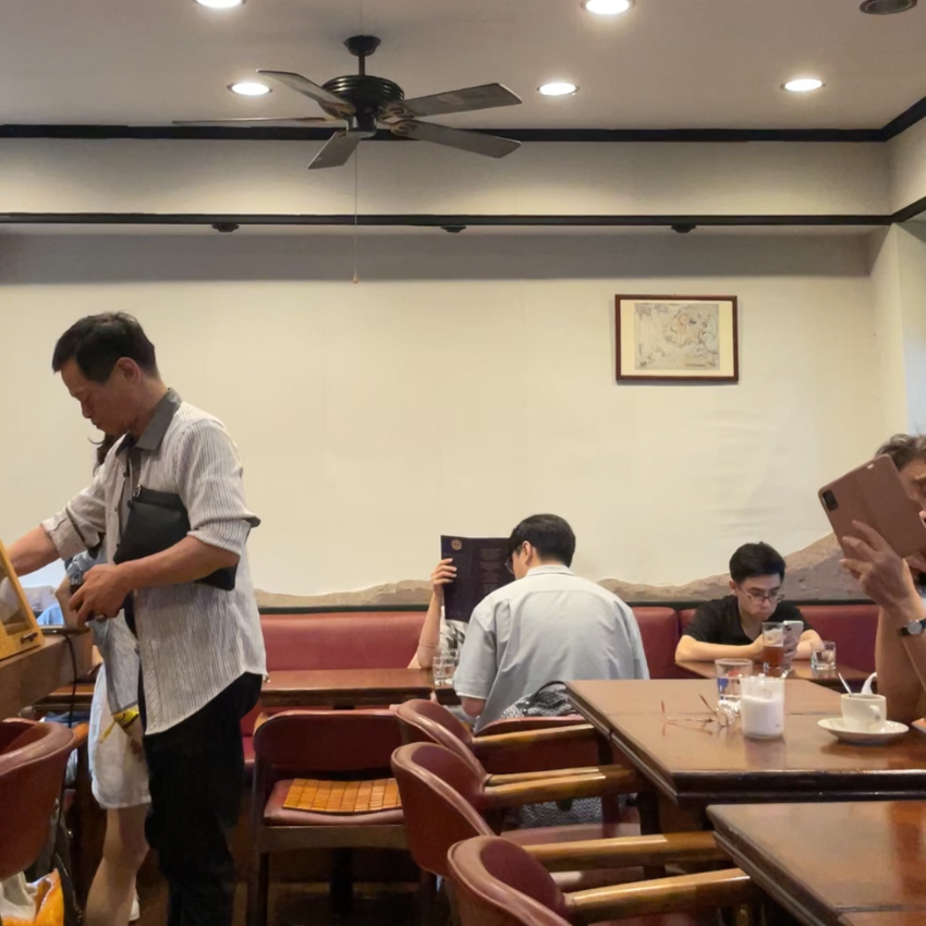 牆面貼著米色壁紙、地板鋪上木料,環境乾淨卻不失年代感,咖啡香與電視新聞的聲音交織成一種樸實日常。這裡沒有網美打卡的華麗擺設,卻有一份家一般的親切感。