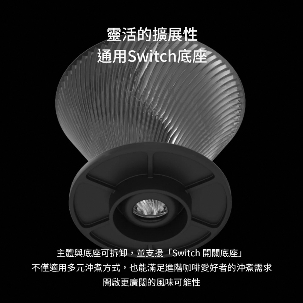 • 支援浸入式開關:相容於「浸入式滴濾開關」配件。這意味著您可以隨時在「手沖滴濾」與「浸泡式萃取」之間切換,滿足進階玩家對於風味實驗的各種需求。