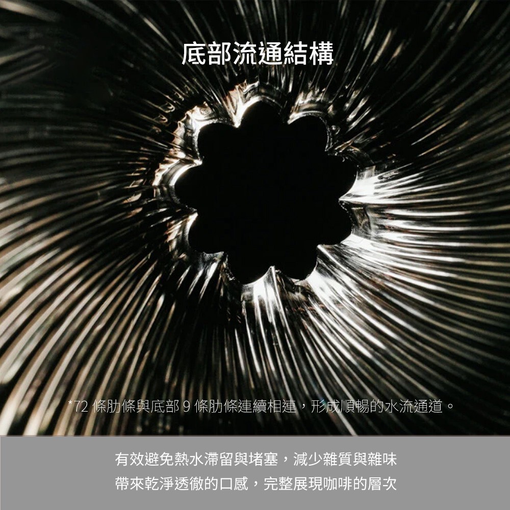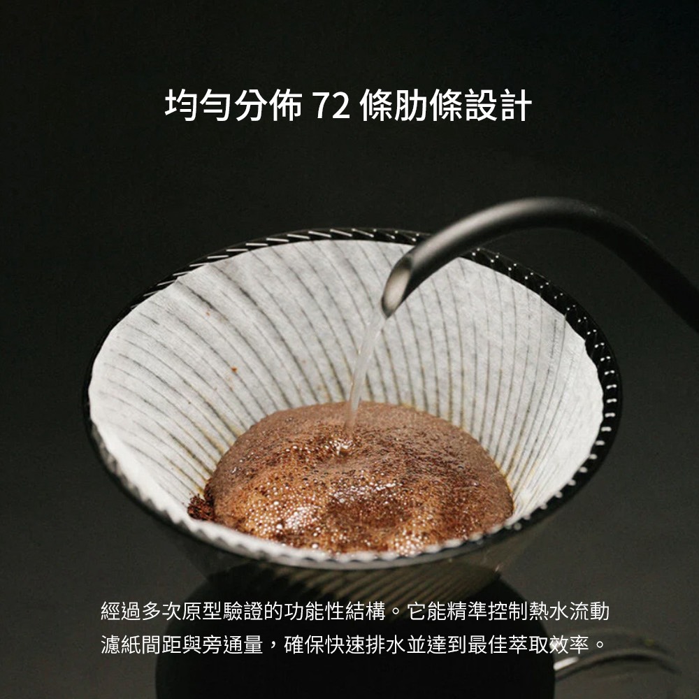 • 極致控流:獨家「72 條肋條」精密結構,確保排水順暢,提升萃取效率。