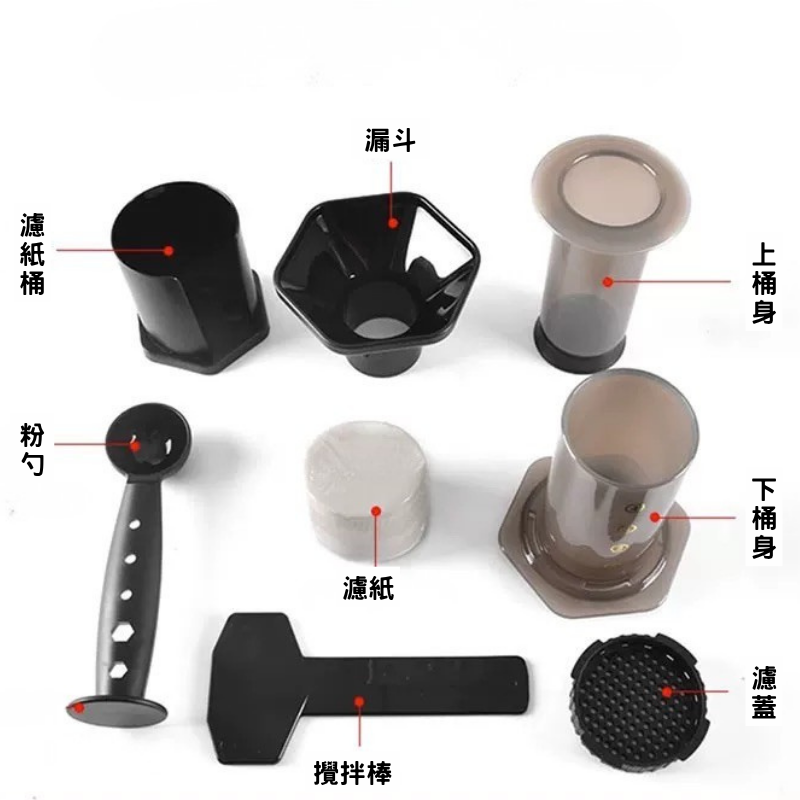 • 配件全可替換:濾紙、濾網、壓桿等耗材取得容易。