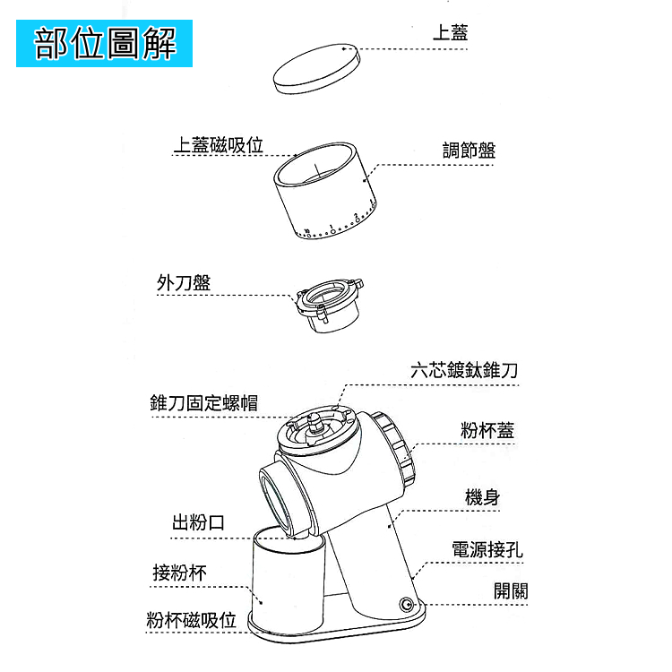 磁吸式豆槽上蓋,蓋上即固定,方便使用